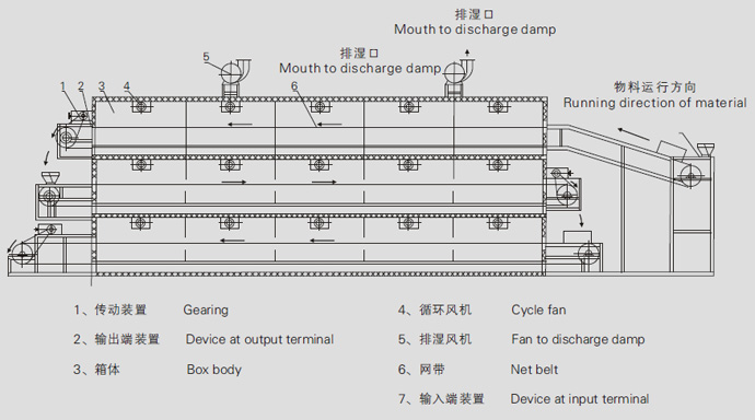 DW系列多層帶式枯燥機是成批出產用的持續式枯燥裝備,用于透氣性較好的片狀、條狀、顆粒狀物料的枯燥,對脫水蔬菜、催化劑、中藥飲片等類含水率高的、而物料溫度不許可高的物料尤其適合;該系列枯燥機具備枯燥速度快、蒸發強度高、產物品質好的長處,對脫水濾餅類的膏狀物料,需經造粒或制成條狀前方可枯燥。